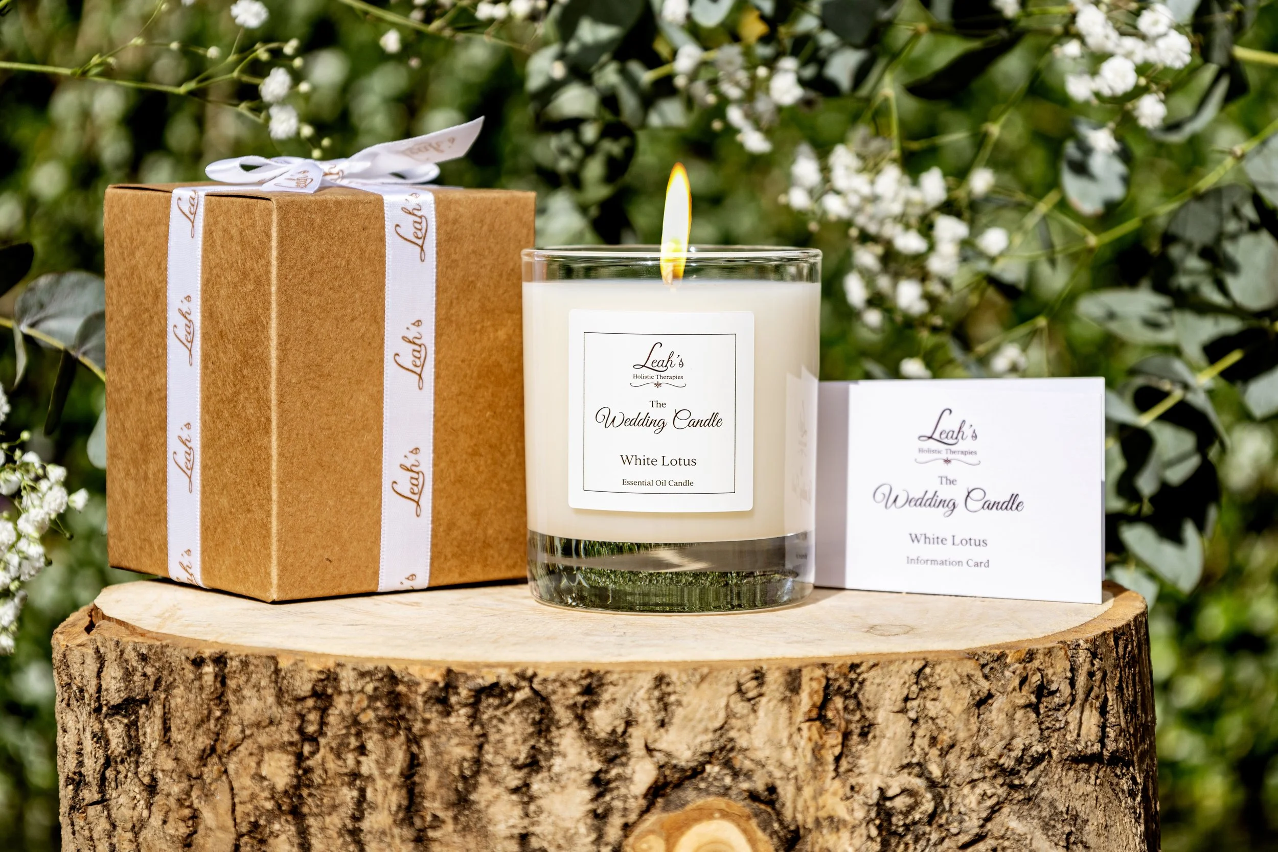 Fill your Wedding Day with the exquisite and captivating Lotus Flower Essential Oil Candle lovingly crafted by award winning Aromatherapist Leah Cooney.